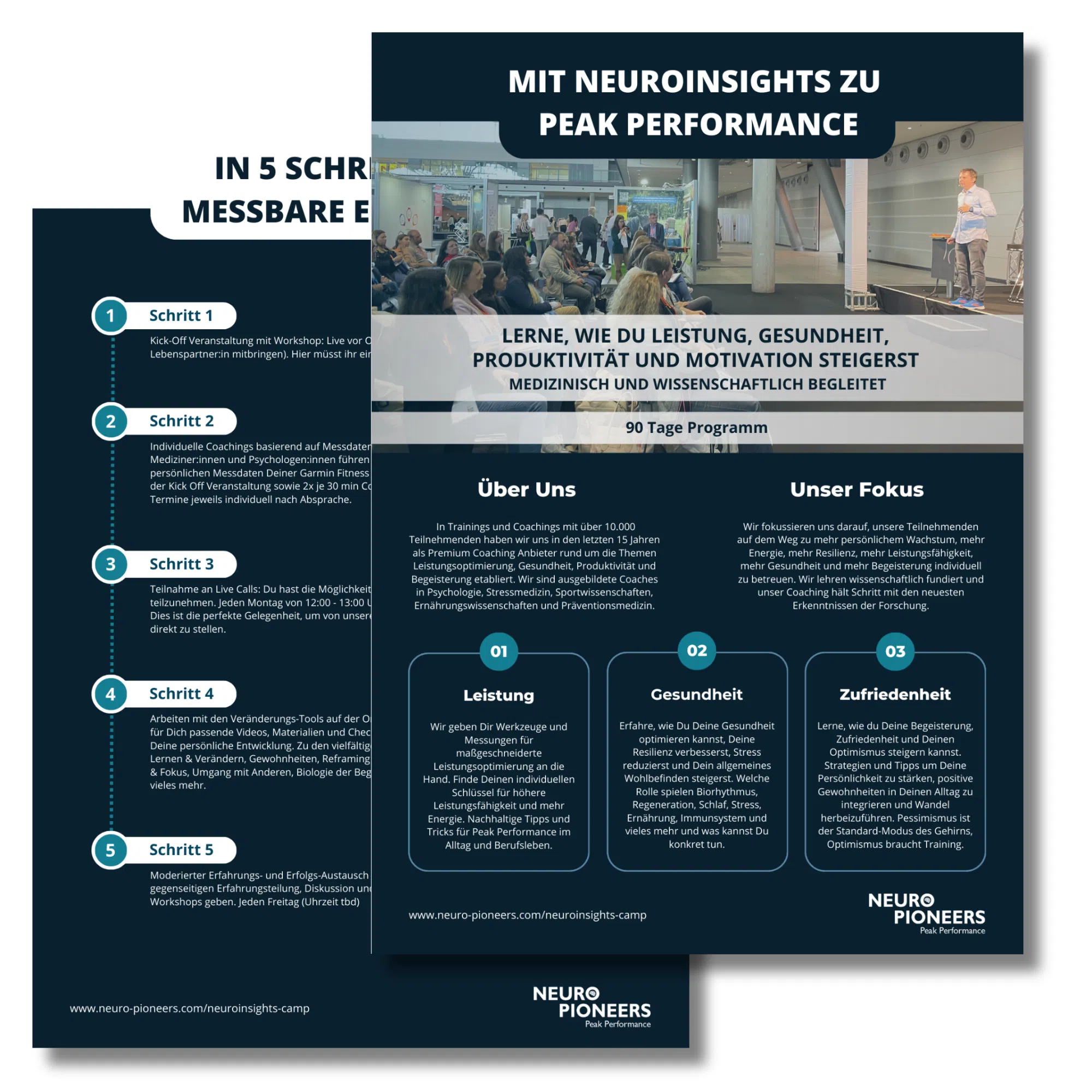 In unserem Training dreht sich alles um Spitzenleistung und persönliche Entwicklung. Du erhältst maßgeschneiderte Werkzeuge und wertvolle Messungen, die Deine Leistungsfähigkeit optimieren. Entdecke Deinen individuellen Schlüssel für mehr Begeisterung und Höchstleistungen im Alltag und Berufsleben. Lerne, wie Du Deine Gesundheit optimierst, Deine Resilienz stärkst und Stress reduzierst. Tauche ein in die faszinierenden Themen Biorhythmus, Regeneration, Schlaf, Stressbewältigung, Ernährung und vieles mehr. Unsere Tipps und Tricks für Peak Performance kannst du problemlos in Deinen Alltag integrieren.